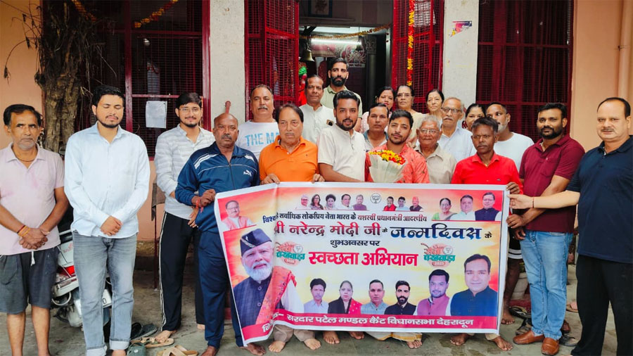 देहरादून। सेवा पखवाड़ा-2025 के अंतर्गत प्रधानमंत्री नरेंद्र मोदी के जन्मदिन के अवसर पर मंडल अध्यक्ष सरदार पटेल मण्डल आशीष शर्मा के नेतृत्व में वार्ड 34 गोविंदगढ़ श्री हनुमान मंदिर, शांति विहार के प्रांगण में स्वच्छता अभियान का आयोजन किया गया। यह अभियान प्रधानमंत्री नरेंद्र मोदी की प्रेरणा से स्वच्छ भारत मिशन के प्रति समर्पण और समाज के प्रति सेवा भावना को बढ़ावा देने के उद्देश्य से आयोजित किया गया। साथ ही श्री हनुमान मंदिर के पंडित संदीप एवं श्रीमती ममता ढींगरा को पुष्प गुच्छ देकर सम्मानित किया। इस अवसर पर महानगर कोषाध्यक्ष बब्लू बंसल, महानगर सोशल मीडिया संयोजक महिपाल सिंह, सेवा पखवाड़ा कार्यक्रम के संयोजक मंडल महामंत्री अजय सिंह, सह संयोजक सुंदेश्वर ठाकुर, मंडल महामन्त्री मनोज कम्बोज, मंडल उपाध्यक्ष विनोद तोमर, श्रीमती रेखा निगम, मंडल कार्यकारिणी सदस्य सूरज सोनकर, रमेश गिरी, वरिष्ठ भाजपा नेता पीएल सेठ, कुलदीप पंत, शक्ति केंद्र संयोजक प्रमोद दत्त, बूथ अध्यक्ष नवीन, राहुल जुयाल, संतोष थापा, अभिषेक, कुलदीप लूथरा, राम दास, श्रीमती शारदा सेठ, श्रीमती शशि आदि सभी लोग उपस्थित रहे।