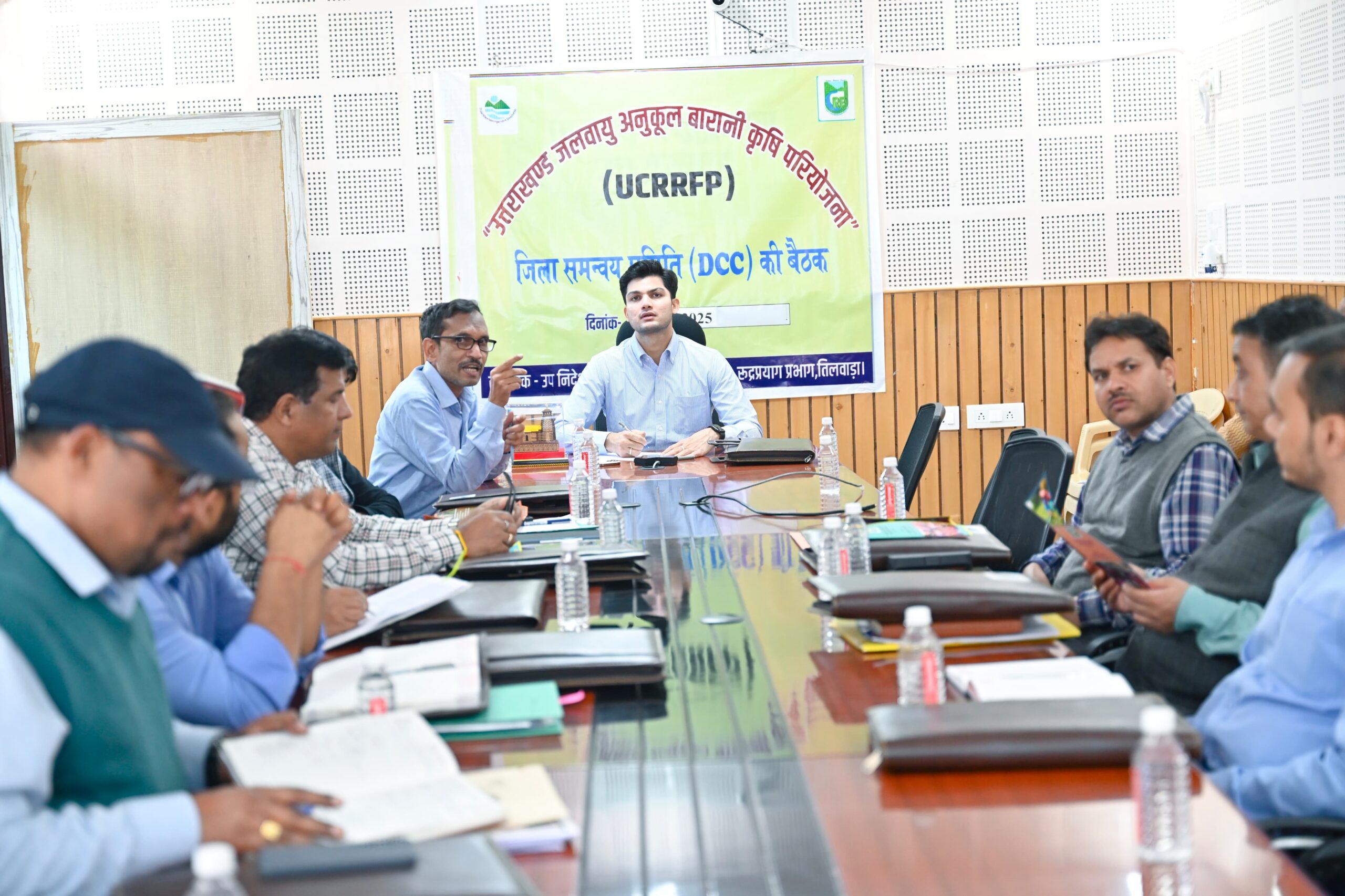 रुद्रप्रयाग। उत्तराखण्ड जलवायु अनुकूल बारानी कृषि परियोजना के अन्तर्गत गठित जिला समन्वय समिति की बैठक आज जिलाधिकारी प्रतीक जैन की अध्यक्षता में एन.आई.सी. सभागार, जिला कार्यालय रुद्रप्रयाग में सम्पन्न हुई। बैठक का उद्देश्य परियोजना के सुचारू संचालन एवं सम्बन्धित रेखीय विभागों से केन्द्राभिसरण सुनिश्चित करना रहा। इस अवसर पर डिप्टी डायरेक्टर, जलागम आर.के. सिंह द्वारा जिलाधिकारी को परियोजना की रूपरेखा एवं उद्देश्यों से अवगत कराया गया।उन्होंने बताया कि इस परियोजना का मुख्य उद्देश्य वर्षा आधारित कृषि को जलवायु अनुकूल उत्पादन प्रणाली के रूप में विकसित कर, कृषि क्षेत्र में आजीविका संवर्धन एवं ग्रीनहाउस गैस उत्सर्जन में कमी लाना है। यह परियोजना वर्ष 2024 से 2030 (6 वर्षों) की अवधि के लिए राज्य के 08 जनपदों एवं 13 विकासखण्डों में संचालित की जा रही है, जिसमें जनपद रुद्रप्रयाग के अगस्त्यमुनि एवं जखोली विकासखण्ड भी सम्मिलित हैं। बैठक के दौरान जिलाधिकारी प्रतीक जैन ने परियोजना से सम्बन्धित विभिन्न विभागों से वर्तमान एवं प्रस्तावित कार्यों का विवरण, फंड उपयोग की स्थिति, तथा प्रगति रिपोर्ट की जानकारी प्राप्त की। उन्होंने अधिकारियों को निर्देशित किया कि परियोजना के अंतर्गत कृषि, उद्यान, पशुपालन, जलागम, सिंचाई, एवं अन्य सम्बंधित विभाग आपस में समन्वय स्थापित कर कार्य करें, ताकि परियोजना के उद्देश्यों की प्राप्ति सुनिश्चित की जा सके।