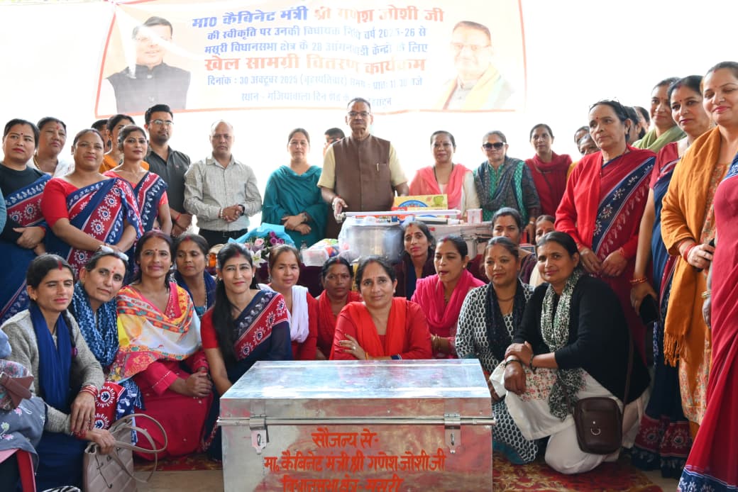 देहरादून 30 अक्टूबर। वीरवार को कैबिनेट मंत्री गणेश जोशी ने देहरादून के गजियावाला में मसूरी विधानसभा क्षेत्र के अर्न्तगत विकाखण्ड सहसपुर के तहत 15 ग्राम पंचायतों के लिए 28 आंगनवाड़ी केंद्रों को खेल एवं पठन-पाठन सामग्री का वितरण कार्यक्रम। इसके तहत आंगनवाड़ी केन्द्रों में बच्चों के लिए टिफिन बॉक्स, पानी की बोतल, डार्ट र्बोड, पजल गेम, किचन सेट, डॉक्टर सेट, चार्ट 3डी, चार्ट वाईट, चार्ट ब्लैक, रोलर बोर्ड ब्लैक, रोलर बोर्ड वाईट, क्रेजी बॉल, पेन्सिल बॉक्स, पेन्सिल, कटर शार्पनर, रबड़ इरेजर, स्कैच पेन, दरी, कलरिंग बुक, स्लेट, स्लेटी बॉक्स, वेट मशीन, आयरन बॉक्स, एलुमिनियम पतीला, करछी स्टील, प्रेशर कूकर आदि सामाग्री उपलब्ध करायी। उन्होंने मसूरी विधानसभा क्षेत्र के अर्न्तगत सभी आंगनवाड़ी केन्द्रों के लिए फर्नीचर, अल्मारी तथा अन्य आवश्यक सामाग्री उपलब्ध कराये जाने की घोषणा भी की। वितरण कार्यक्रम के बाद अपने सम्बोधन में काबीना मंत्री ने नोबेल पुरस्कार विजेता नेल्सन मंडेला की बात को रखते हुए कहा कि शिक्षा सबसे शक्तिशाली हथियार है, जिसका उपयोग आप दुनिया को बदलने के लिए कर सकते हैं। मंत्री ने कहा कि शिक्षा हमारे समाज का एक महत्वपूर्ण हिस्सा है और शिक्षा के बिना किसी भी देश व समाज का विकास नहीं हो सकता है। उन्होंने कहा कि मैंने मसूरी विधानसभा के 100 आंगनवाड़ी केंद्रों व 11 मिनी आंगनबाड़ी केंद्रों में पढ़ रहे बच्चों को खेल व पठन पाठ्य सामग्री देने की शुरुआत की। इसी क्रम को आगे बढ़ाते हुए आज 28 आंगनवाड़ी केन्द्रों में पठन-पाठन एवं खेल सामाग्री उपलब्ध करायी जा रही हैं। उन्होंने कहा कि शत प्रतिशत आंगनवाड़ियों को पठन पाठन एवं खेल सामाग्री उपलब्ध करायी जा चुकी है। कैबिनेट मंत्री ने कहा कि मुख्यमंत्री पुष्कर सिंह धामी के नेतृत्व में राज्य सरकार बाल विकास एवं महिला सशक्तिकरण के लिए सतत प्रयासरत है। आंगनवाड़ी केन्द्र बच्चों के सर्वांगीण विकास की प्रथम कड़ी हैं, जहाँ बालकों में शिक्षा, संस्कार और स्वास्थ्य के प्रति जागरूकता की नींव रखी जाती है। उन्होंने बताया कि खेल एवं पठन-पाठन सामग्री उपलब्ध होने से बच्चों में सीखने की रुचि बढ़ेगी तथा आंगनवाड़ी कार्यकर्ताओं को भी शिक्षण कार्य बेहतर ढंग से संचालित करने में सहायता मिलेगी। इस अवसर पर भाजपा की मंडल प्रभारी ज्योति कोटिया, मण्डल महामंत्री किरन मन्युड़ी, सीमा पुंडीर, पूर्व प्रधान लीला शर्मा, ग्राम प्रधान सुनील क्षेत्री, मंडल अध्यक्ष राजीव गुरुंग, पूर्व मंडल अध्यक्ष पूनम नौटियाल, जितेंद्र राणा, समुन्द्र रैग्मी, संजय शर्मा, ग्राम प्रधान भारती जवाड़ी, सुरेश जवाडी पूर्व बीडीसी ज्योति ढकाल सहित स्थानीय लोग उपस्थित रहे।