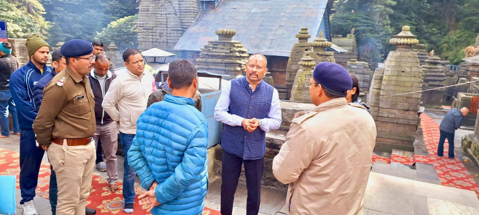 अल्मोड़ा। वर्तमान परिपेक्ष के दृष्टिगत एसएसपी अल्मोड़ा, देवेन्द्र पींचा द्वारा जनपद के प्रमुख धार्मिक एवं पर्यटन स्थलों श्री जागेश्वर धाम व चितई की आन्तरिक व बाह्य सुरक्षा सुरक्षा व्यवस्था का गहन निरीक्षण किया गया। निरीक्षण के दौरान उन्होंने पुलिस तैनाती, सीसीटीवी कवरेज, ट्रैफिक प्रबंधन, भीड़ नियंत्रण, अग्नि सुरक्षा, ब्राउण्ड्री वॉल तथा अन्य सुरक्षा बिंदुओं की विस्तृत समीक्षा की गयी। एसएसपी अल्मोड़ा द्वारा वरिष्ठ उप निरीक्षक सतीश चन्द्र कापड़ी (चितई में) व थानाध्यक्ष दन्या दिनेश नाथ महंत को (श्री जागेश्वर धाम में) पर्याप्त सुरक्षा व्यवस्था हेतु आवश्यक निर्देश दिए तथा पर्यटकों एवं श्रद्धालुओं को सुरक्षित वातावरण प्रदान करने हेतु सतर्कता बढ़ाने पर जोर दिया। साथ ही संवेदनशील स्थानों पर पुलिस की उपस्थिति बढ़ाने व असामाजिक तत्वों पर कड़ी निगरानी रखने के निर्देश भी दिये गए। एसएसपी अल्मोड़ा ने कहा की अल्मोड़ा में आने वाले श्रद्धालुओं व पर्यटकों की सुरक्षा सर्वोच्च प्राथमिकता है, जिसके लिए पुलिस लगातार तत्परता से कार्य कर रही है।