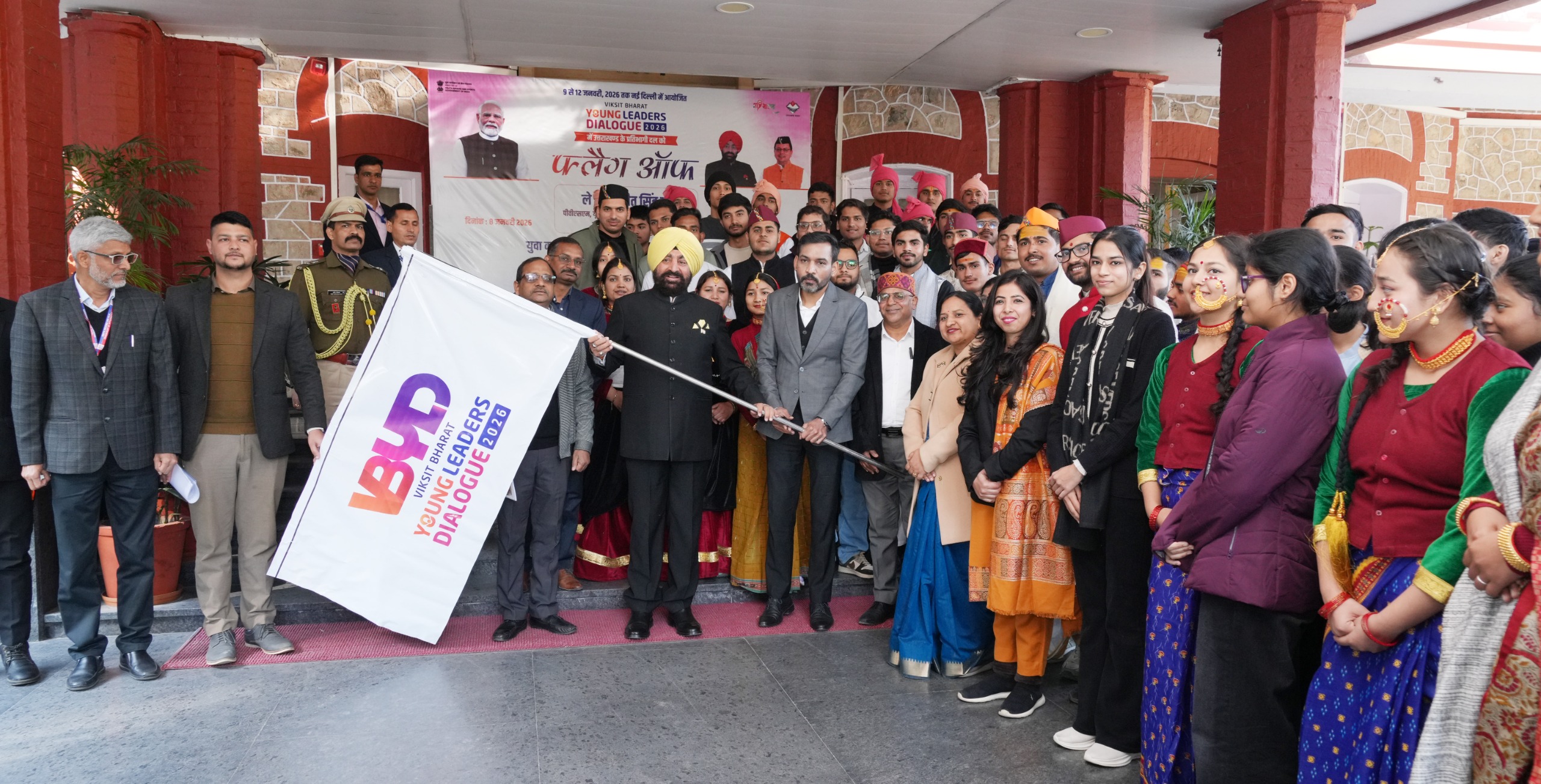देहरादून 08 जनवरी। राज्यपाल लेफ्टिनेंट जनरल गुरमीत सिंह (से नि) द्वारा गुरुवार को लोक भवन में आगामी 9 से 12 जनवरी 2026 तक नई दिल्ली में आयोजित विकसित भारत यंग लीडर्स डायलॉग-2026 में उत्तराखण्ड के प्रतिभागी दल को फ्लैग ऑफ किया गया। राज्यपाल ने युवाओं और प्रतिभागियों से संवाद करते हुए कहा कि भारत का युवा केवल डेमोग्राफी डिविडेंड ही नहीं, बल्कि डेमोग्राफी ड्राइविंग फोर्स भी है। उन्होंने युवाओं से कहा कि अपना लक्ष्य तय करें, अपने मिशन और दैनिक अनुभवों को अपनी दैनिक डायरी में नोट करें। कहा कि आप लोगों को जो उत्तराखण्ड की ओर से राष्ट्रीय स्तर पर प्रतिनिधित्व करने का अवसर मिला है उसका बेहतर लाभ उठाएं। जो अनुभव आप वहां से पाएंगे उनको अपने सहपाठियों के साथ-साथ अन्य लोगों से भी साझा करें क्योंकि एक लीडर केवल अपने बारे में नहीं सोचता वह सभी लोगों के हित के बारे में सोचता है और आप लोगों को आगे जाकर देश का नेतृत्व करना है। राज्यपाल ने युवाओं का उत्साह वर्धन करते हुए कहा कि उत्तराखण्ड आध्यात्मिक, योग और तप की भूमि है, यहां की संस्कृति- परंपरा, आतिथ्य- सत्कार, जड़ी- बूटी सभी में मौलिकता पाई जाती है और उन सभी की अलग पहचान है। आपको भी इसी तरह अपनी अलग पहचान बनानी है। उन्होंने कहा कि वर्ष 2026 का वर्ष तकनीक के आधिक्य का होने वाला वर्ष है, इसीलिए अपने को स्किल्ड करो, खुद का एक अलग औरा बनाओ, अपनी सोच, विचार और धारणा को बड़ा करो, क्योंकि विकसित भारत के युवा की सोच भी बड़ी, व्यापक और विकसित होनी चाहिए।विदित है कि प्रत्येक वर्ष स्वामी विवेकानन्द जी के जन्मोत्सव पर राष्ट्रीय युवा दिवस का आयोजन किया जाता है, जिसमें राष्ट्रीय स्तर पर युवा महोत्सव का आयोजन किया जाता है। इस वर्ष उक्त आयोजन के अंतर्गत विकसित भारत यंग लीडर्स डायलॉग-2026 का आयोजन भारत मंडपम, नई दिल्ली में किया जा रहा है। यह आयोजन राष्ट्रीय महत्व के आयोजन में सम्मिलित है। इस कार्यक्रम में राज्य के कुल 76 युवाओं द्वारा विभिन्न प्रतियोगी विधाओं में प्रतिभाग किया जा रहा है। इनका चयन कई स्तरों की प्रतियोगिताओं के उपरान्त किया गया है। सांस्कृतिक विधाओं में क्षेत्र पंचायत स्तर और जिला स्तर की प्रतियोगिताओं के उपरान्त राज्य स्तर पर आयोजित युवा महोत्सव में सफल 24 प्रतिभागियों द्वारा राष्ट्रीय स्तर पर प्रतिभाग किया जा रहा है। बौद्धिक विधाओं के अंतर्गत हाइब्रिड माध्यम से विभिन्न चरणों में प्रतिभागियों का चयन कर राज्य स्तर पर आयोजित पीपीटी एवं लीडरशिप असेसमेंट चरण का आयोजन दिनांक 03 एवं 04 जनवरी-2026 को किया गया था, जिसमें भारत सरकार के पर्यवेक्षक की उपस्थिति में 42 प्रतिभागियों का चयन किया गया है। इस अवसर पर निदेशक युवा कल्याण डॉ. आशीष चौहान, अपर निदेशक राकेश डिमरी 
