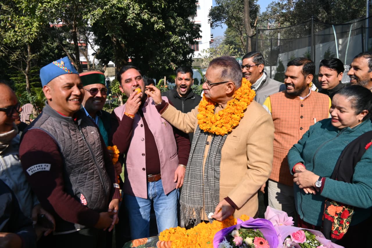 देहरादून, 16 जनवरी। सैनिक कल्याण मंत्री गणेश जोशी से आज उपनल कर्मचारी महासंघ के पदाधिकारियों ने उनके कैंप कार्यालय में भेंट कर 10 वर्ष की निरंतर सेवा पूर्ण करने वाले उपनल कर्मियों को समान कार्य–समान वेतन का लाभ दिए जाने पर आभार व्यक्त किया। सैनिक कल्याण मंत्री गणेश जोशी ने मिठाई खिलाकर पदाधिकारियों को बधाई एवं शुभकामनाएं भी दी।