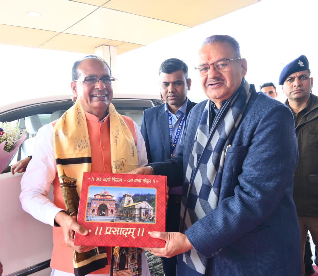 देहरादून, 24 जनवरी। प्रदेश की कृषि मंत्री गणेश जोशी ने आज जॉलीग्रांट एयरपोर्ट पर केंद्रीय कृषि एवं कृषक कल्याण एवं ग्रामीण विकास मंत्री शिवराज सिंह चौहान का उत्तराखंड आगमन पर पुष्प गुच्छ भेंट कर स्वागत एवं अभिनंदन किया। इस दौरान कृषि मंत्री गणेश जोशी ने केंद्रीय कृषि मंत्री शिवराज सिंह चौहान को भगवान बदरीनाथ धाम का पटका एवं प्रसाद भी भेंट किया।