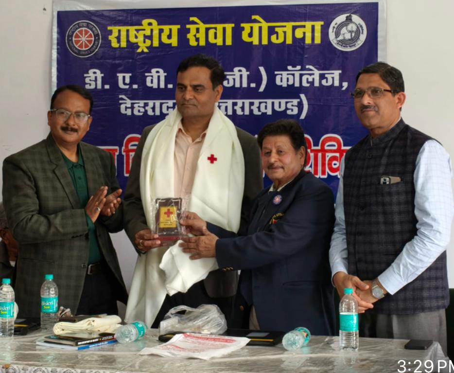 Dehradun. दूरदर्शन, उत्तराखंड के सहायक निदेशक अनिल भारती ने कहा कि राष्ट्रीय सेवा योजना युवा छात्र छात्राओं में समाज सेवा की भावना जाग्रत करने में सफल रही है। भारती बाल भवन, रायपुर में डीएवी (पीजी) कॉलेज के छात्रों के “डी ” यूनिट के राष्ट्रीय सेवा योजना के सात दिवसीय विशेष वार्षिक शिविर के समापन एवं सम्मान समारोह के अवसर पर बतौर मुख्य अतिथि छात्रों को सम्बोधित कर रहे थे। उन्होंने कहा कि शिविरों में श्रमदान से लेकर आपदा प्रबंधन उपायों के साथ ही बस्तियों में जाकर लोगों को स्वच्छता, अंधविश्वास, विभिन्न रोगों के प्रति जागरूकता, मतदाता जागरूकता तथा नशामुक्ति अभियान के माध्यम से समाज सेवा का महत्वपूर्ण किया जाता है l यूथ रेडक्रॉस कमेटी के मुख्य आपदा प्रबंधन अधिकारी डॉ. अनिल वर्मा ने बताया कि शिविर के दौरान उनके द्वारा युद्ध अथवा शांतिकाल में आपदा प्रबंधन प्रशिक्षण के तहत छात्रों को अग्निशमन, भूकंप, भूस्खलन, बाढ़ आदि विभिन्न आपदाओं के दौरान घायलों को सुरक्षित निकालकर प्राथमिक चिकित्सा तथा सीपीआर आदि के लिए ले जाने के इमरजेंसी मेथड्स आफ रेस्क्यू आदि का विधिवत् प्रशिक्षण दिया गया। उन्होंने छात्रों के पूर्ण अनुशासन में रहकर रूचि पूर्वक प्रशिक्षण ग्रहण करने की सराहना की। प्रशिक्षण के उपरांत एनएसएस के कार्यक्रम अधिकारी डाo सत्यम द्विवेदी के निर्देशन एवं टीम लीडर्स विवेक सिंह, गौरी शंकर के नेतृत्व में गौतम रावत, प्रवेश राणा, आशू धीमान दीपक चौहान, कृष , सुजल बिष्ट, संजय पाठक, हरीश जलाल, कुणाल रावत, शौर्य अमोली, अविनाश पांडे, नितिन सिंह, सत्यवान् पुंडीर, दीपक चौहान, संदीप कुमार, मोहित यादव, इज़हान आदि स्वयंसेवी छात्रों ने ह्यूमन क्रेडल, ह्यूमन क्रच, फायरमैन्स लिफ्ट, फोर एंड आफ्ट मेथड, टू-थ्री-फोर हैंड्स मेथड, टो ड्रैग, मंकी क्राल के साथ ही रोप रेस्क्यू के अंर्तगत बोलाईन ड्रैग, चेयर नाट, इम्प्रोवाईज्ड स्ट्रेचर तथा मल्टी स्टोरी बिल्डिंग से घायलों को रस्सी के सहारे ऊपर से नीचे उतारने आदि का कुशल प्रदर्शन किया गया। कार्यक्रम अधिकारी डॉ. सत्यम द्विवेदी, मुख्य अतिथि अनिल भारती, डॉ. विनीत विश्नोई तथा डॉ.अमित शर्मा ने रेडक्रास सोसाइटी के आपदा प्रशिक्षण अधिकारी डॉ. अनिल वर्मा को 155 बार रक्तदान करने तथा छात्रों को आपदा प्रबंधन, अग्नि शमन तथा प्राथमिक चिकित्सा का सघन प्रशिक्षण कुशलतापूर्वक प्रदान करने हेतु एनएसएस के विशेष पुरस्कार से सम्मानित किया l डॉ. अनिल वर्मा ने उन्हें सम्मानित करने के लिए डॉ. द्विवेदी का आभार व्यक्त किया। कार्यक्रम अधिकारी डॉ. सत्यम द्विवेदी ने अपने उद्बोधन में सात दिवसीय शिविर के दौरान रेड क्रॉस सोसाइटी एवं सिविल डिफेन्स सहित अन्य संस्थाओं द्वारा प्रशिक्षण एवं जागर