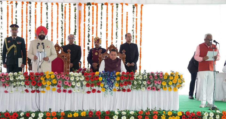 देहरादून 20 मार्च। राज्यपाल लेफ्टिनेंट जनरल गुरमीत सिंह (से नि) ने शुक्रवार को लोक भवन में आयोजित शपथ ग्रहण समारोह में उत्तराखण्ड सरकार के मंत्रिपरिषद के नवनियुक्त मंत्रियों को पद एवं गोपनीयता की शपथ दिलाई। इस अवसर पर मुख्यमंत्री पुष्कर सिंह धामी भी उपस्थित रहे। राज्यपाल ने विधायक श्री खजान दास, श्री मदन कौशिक, श्री भरत सिंह चौधरी, श्री प्रदीप बत्रा एवं श्री राम सिंह कैड़ा को मंत्री पद की शपथ दिलाई।