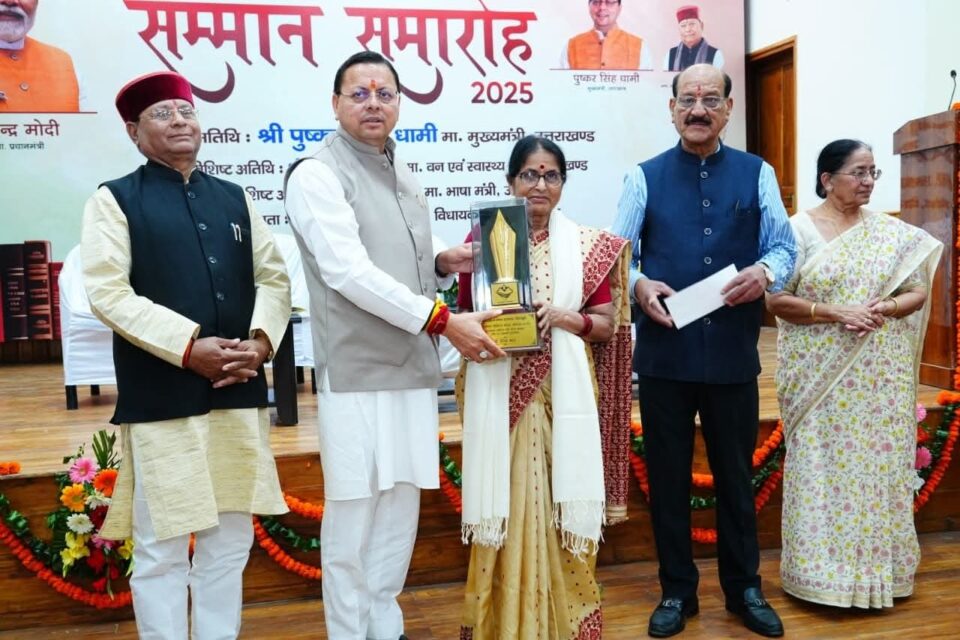 देहरादून. मुख्यमंत्री पुष्कर सिंह धामी ने आज मुख्य सेवक सदन, देहरादून में उत्तराखंड भाषा संस्थान द्वारा आयोजित उत्तराखण्ड साहित्य गौरव सम्मान समारोह-2025 में प्रतिभाग किया। इस अवसर पर उन्होंने उत्तराखण्ड के सर्वोच्च साहित्यिक सम्मान “उत्तराखण्ड साहित्य भूषण सम्मान” से डॉ. जितेन ठाकुर को सम्मानित किया। इसके साथ उन्होंने डॉ. बुद्धिनाथ मिश्र, श्री श्याम सिंह कुटौला, डॉ. प्रीतम सिंह, श्री केसर सिंह राय एवं श्री अताए साबिर अफजल मंगलौरी को “उत्तराखण्ड दीर्घकालीन उत्कृष्ट साहित्य सृजन पुरस्कार” से सम्मानित किया।